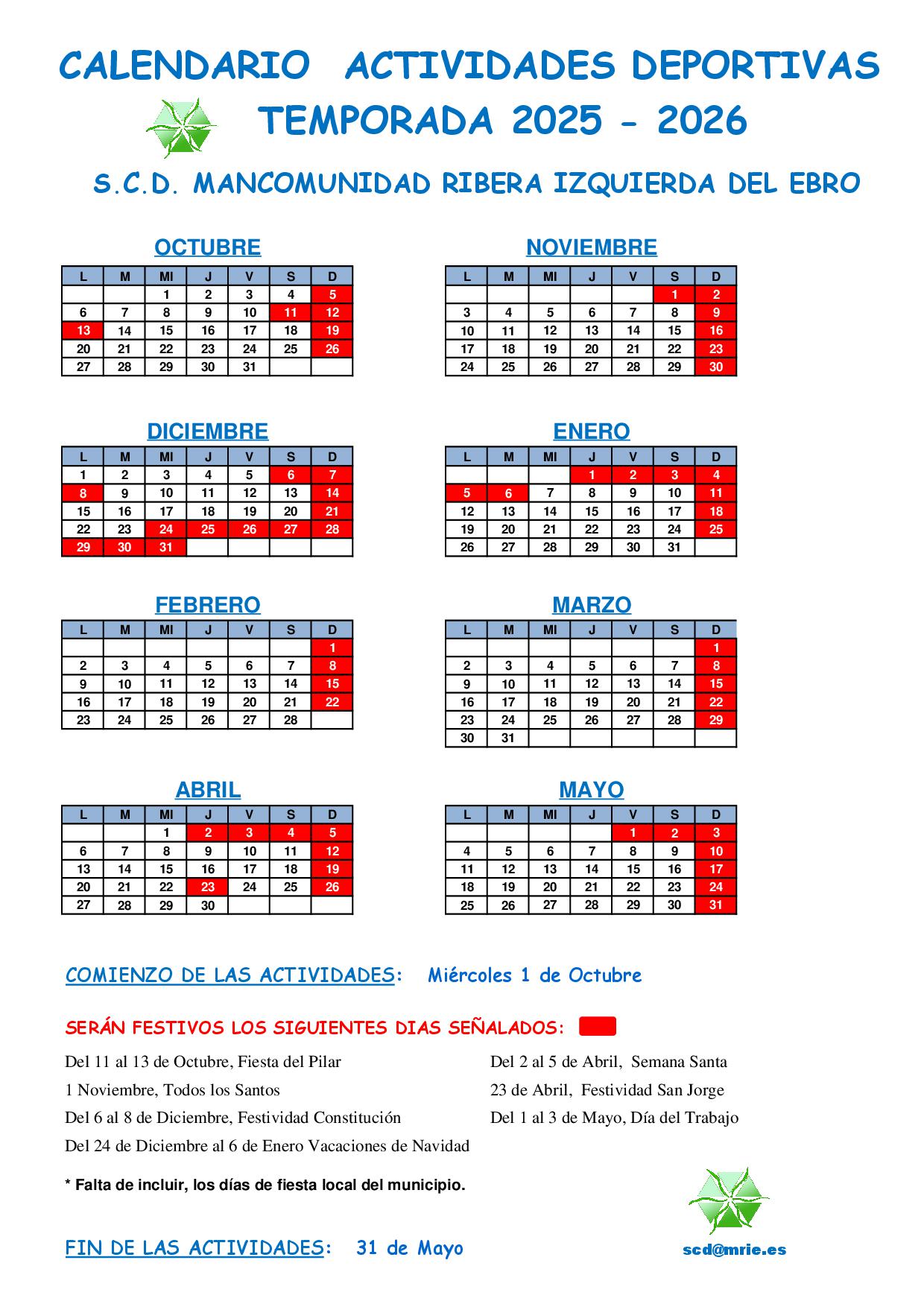 El calendario de actividades podría verse modificado según los diferentes festejos, en ese caso se avisaría con suficiente antelación